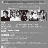 LINE UPは、国内外でシーン最先端のサウンドを提供し続ける音楽プロデューサー中田ヤスタカ(CAPSULE)を筆頭に、DJ KOMORI、RAMRIDER、LIVEには、SPONTANIA、Unaが登場!
