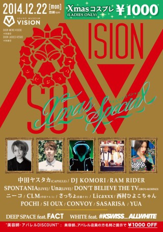 これまで多彩なパーティで東京の夜を刺激してきた国内屈指のオーガナイザー集団ASOBISYSTEMが、一つの集大成として月曜のVISIONを舞台に仕掛ける“ASOVISION”。今回も年に一度のクリスマス・スペシャル・バージョン!!!