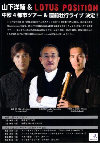 ジャズ界の重鎮 山下洋輔と気鋭のデュオユニット LOTUS POSITIONが組む、新たな日本発現代ジャズ。2015年2月に行われる国際交流基金主催「チェコ&スロバキア4都市ツアー」に先立ち行われる壮行ライブ第二弾。世界を股にかける3人が繰り広げる予想不可能なエネルギッシュな世界をお楽しみください!!