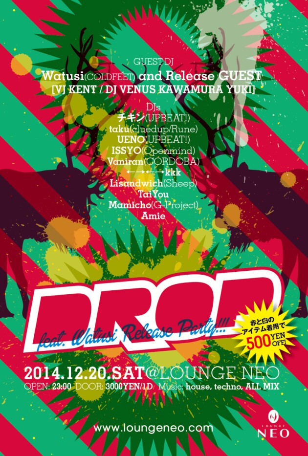 DROP feat. Watusi (COLDFEET) Release Party!!!あの世界のWatusiさんのリリパをDROPとコラボして開催です!!安室奈美恵さんや中島美嘉さんなど、多くのメジャーアーティストを手がけ、アンダーグランドとメジャーを繋ぐWatusiさん!!オーディエンスは釘付けまちがいなしです!!