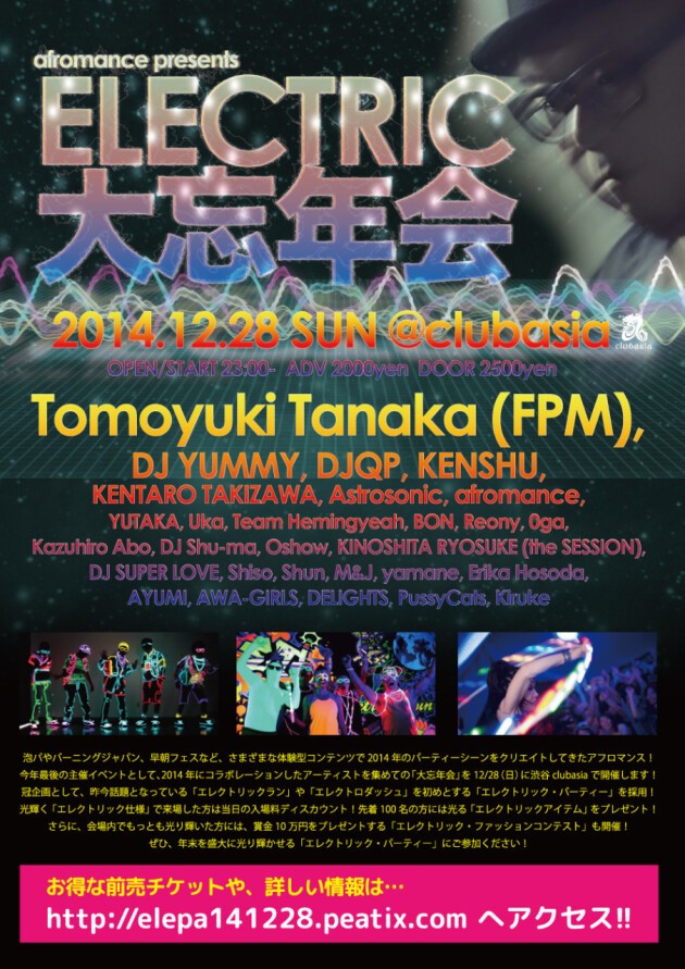 今年最後の実験的な参加型パーティー、「エレクトリック・パーティー」×「大忘年会」=「エレクトリック大忘年会」を是非体感ください!