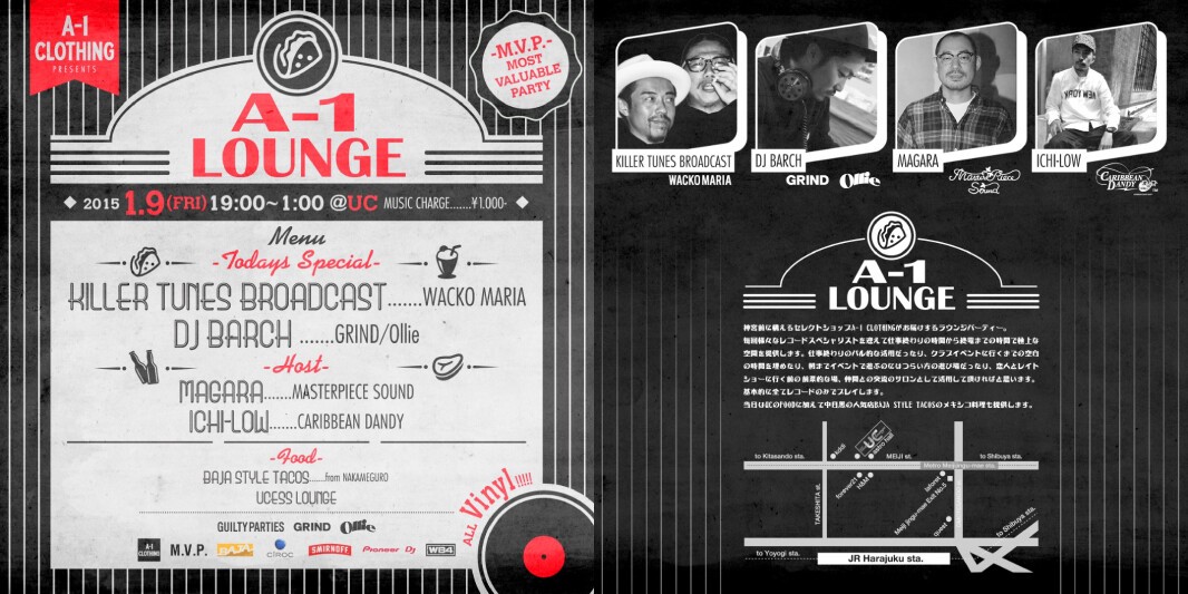 ●神宮前に構えるセレクトショップA-1 CLOTHINGがお届けするラウンジパーティー。