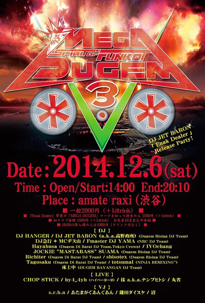 DJ HANGER, DJ JET BARON(a.k.a.高野政所) (Dugem Rising DJ Team), DJ急行 + MCデス山, Fmaster DJ YAMA(NRC DJ Team), Hayabusa(Dugem Di Barat DJ Team, Tokyo Crown), IYOchang, JOCKIE "MASTABASS" SUAMA(Dugem Rising DJ Team), Richiter(Dugem Di Barat DJ Team), shisotex(Dugem Rising DJ Team), Tagosaku(Dugem Di Barat DJ Team), totsumal(NINJA REMIXING™), 床上中(DUGEM BAYANGAN DJ TEAM)