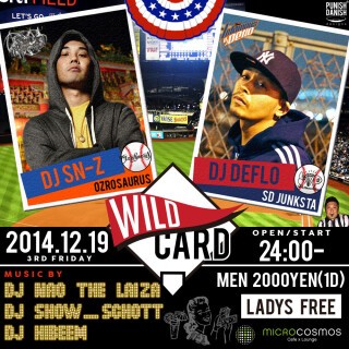 ラップグループSD JUNKSTAのメンバーでもあり、NORIKIYOのバックDJを務め、全国のクラブのフロアを揺らすDJ DEFLOを中心に、NAOtheLAIZA, Show_Schott, HIBEEMのDJ陣がHIP HOP, R&Bを軸とした選曲で金曜の夜を盛り上げる。記念すべき、第1回目のワイルドカードは、神奈川は横浜“Original 045Style”“ハマの大怪獣”今も尚、進化を遂げるヒップホップ・ユニット、OZROSAURUSからDJ SN-Zが登場する!!