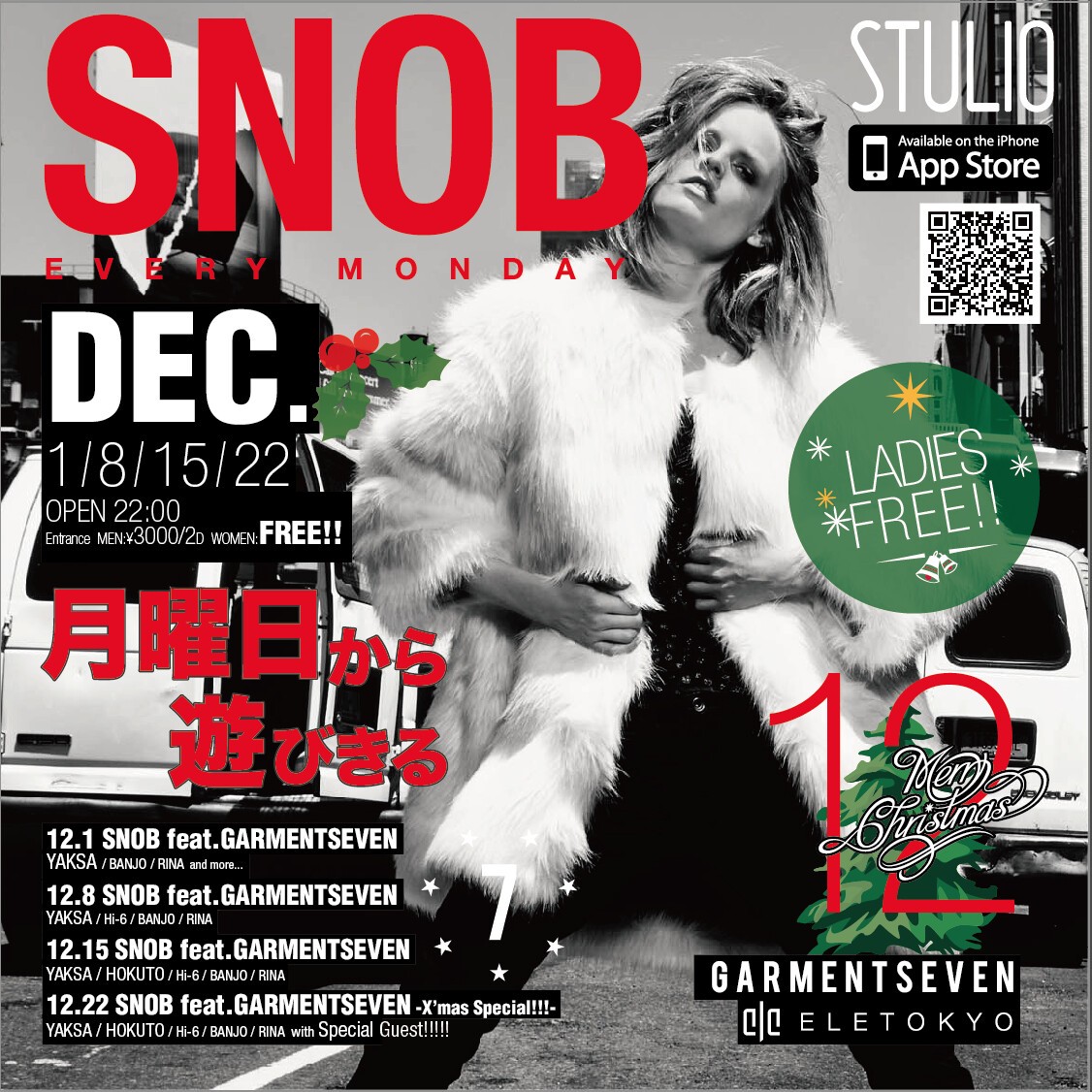 12月も、月曜日はいつもより少しだけお洒落して、ELETOKYOの"SNOB"へ!!