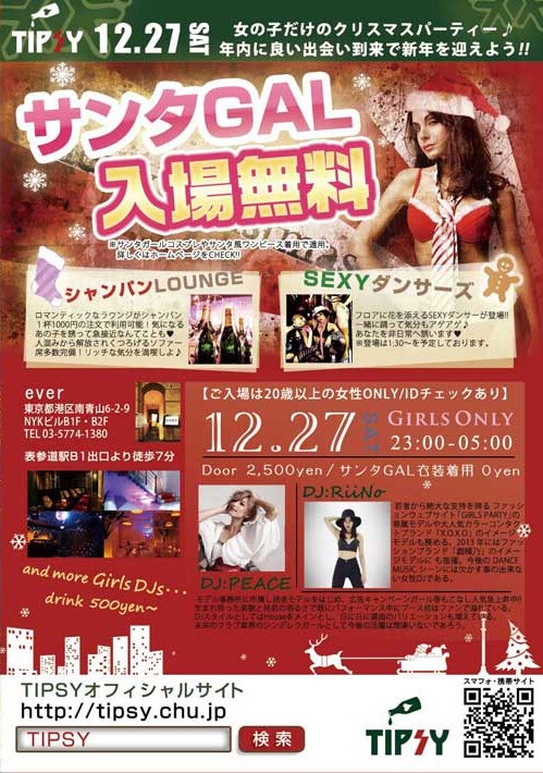 すべての“女性が好きな女性”の為の全く新しいGirls Only Party TIPSY!!!!!