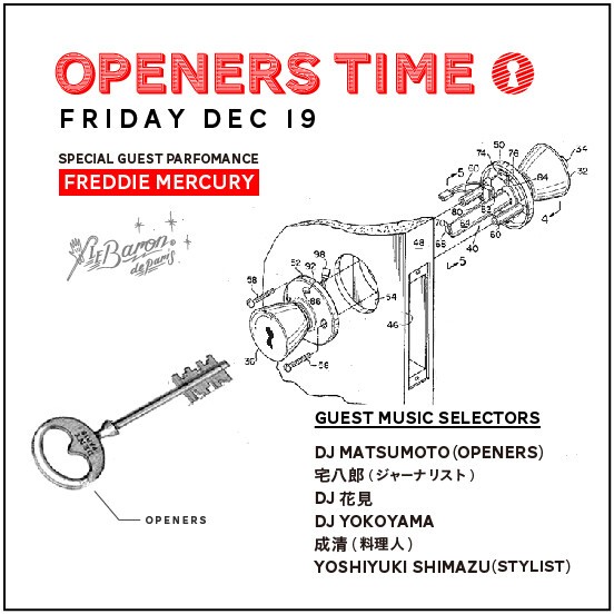 創刊2006年。ジャーナリスト、コラムニスト、アナリストだけでなく、ミュージシャン、 ファッションディレクター、クリエイティブディレクター、エコノミスト、ドクターなど、 最前線で活躍する(オウプナーズ)が執筆、参画するウェブマガジンOPENERS。今宵はスペシャルゲストに謎のパフォーマー”フレディ・マーキュリー”を招き、またスタイリストの島津由行、世界中のセレブリティに愛される青山の台所なるきよの大将、人気ホストとしても活躍している宅八郎など、バラエティ豊かなDJラインナップでスペシャルな一夜をお届けします。大人な夜、OPENERS NIGHT!お見逃しなく!