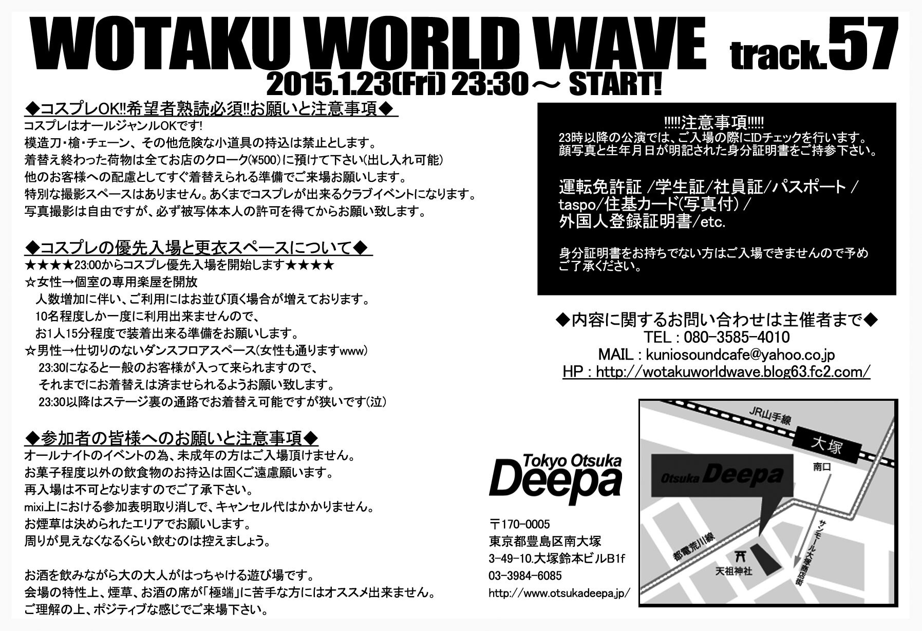 大塚Deepaの23時以降の公演では、ご入場の際にIDチェックを行います。