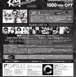 FLOOR LINE UPには、スクラッチ、2枚使いを交えた独特のELECTRO/DISCOミックスで定評のあるDJ、PRODUCE WORKでも活動中の副島ショーゴ、縦ノリを追求した雑食Technoを響かせるFumihiko Chiba、説明不要のモンスターバンドDragon AshからSAKURAI MAKOTO、block.fmや都内各パーティーで大・大・大活躍中のTakeru John Otoguro、彼らを中心に、今最も旬なDJ陣が渋谷clubasiaに集結。
