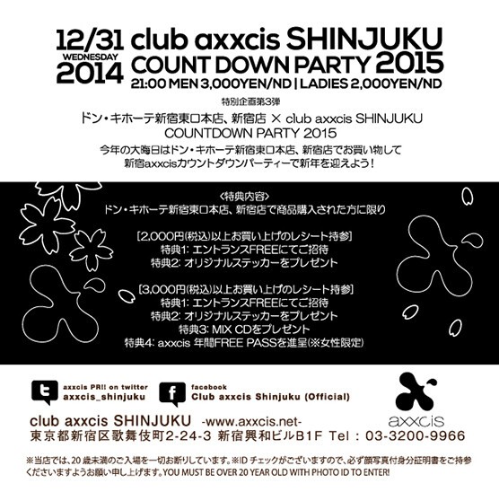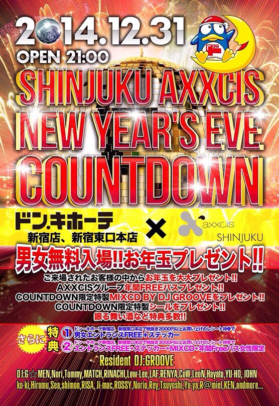 新宿axxcisカウントダウンパーティーで新年を迎えよう!