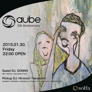 これまで日本のアンダーグラウンドシーンにて数々の多彩なアーティストを招いて来たAUBEが5周年を迎える。この記念すべき今回はWCをオーガナイズし、海外でも数々のリリースを果たして来たWCのオーナーGONNOが登場。またこれまでACONITO, INFORMA, SHAPELESS,AIMERSSE.ORG. SEMANTICA, STROBOSCOPIC といった良質なレーベルからリリースをして来たHIRONORI TAKAHASHIの出演が決定。この特別な一夜を是非楽しんでほしい。