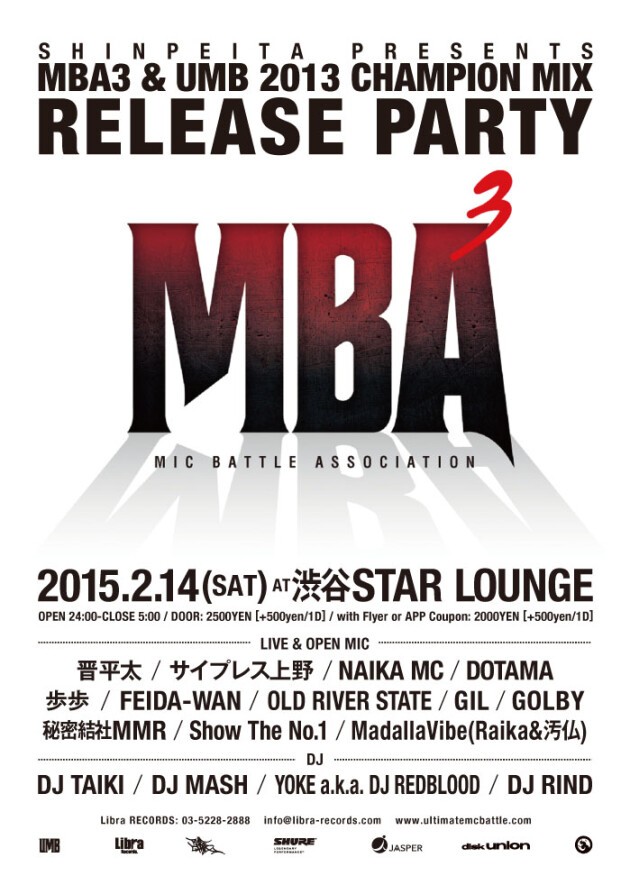 2/14(土)に渋谷STAR LOUNGEにて1月10日発売の"MBA3 & UMB 2013CHAMPION MIX"のRELEASE PARTYを開催します!!!