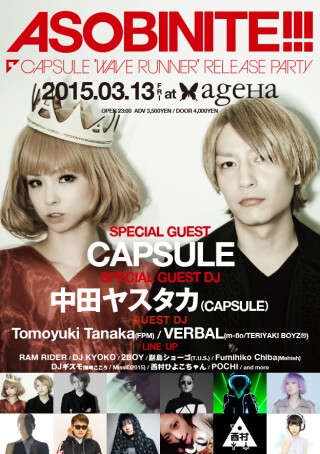 当日は混雑が予想されるので、早めに前売りチケットをゲットして、CAPSULEニューアルバム「WAVE RUNNER」のリリースをASOBINITE!!!でお祝いしよう!