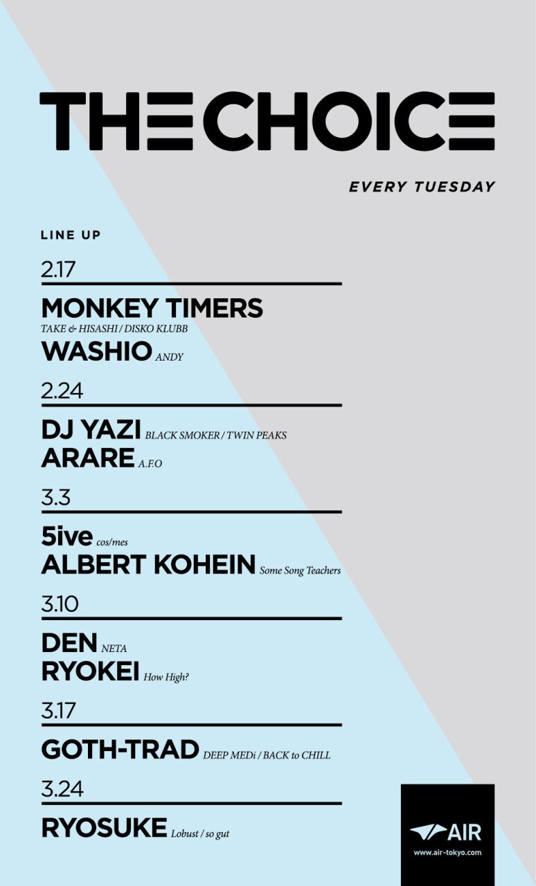 AIRのアンダーグラウンド・スピリットの本質とは何か?東京クラブシーンの未来を活性化させるために、AIRは何をすればいいのか?そのテーマを追求するべくスタートしたウィークデイパーティにTHINK TANKのオリジナルメンバーかつBLACK SMOKER RECORDS主催”EL NINO”のレジデントDJ YAZIが登場。