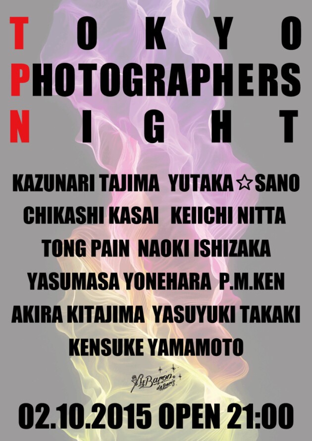 広告、アート、ファッション、音楽、映像など、様々な分野で活躍するフォトグラファーたちを要するTOKYO PHOTOGRAPHER’S NIGHT。2011年3月4日創設以来、日本の経済復興を願いながら仕事と遊びをさらに極めるオッサン集団の底知れぬ瞬発遊戯力に要注意。今夜9時だよ、全員集合!DON’T MISS IT!
