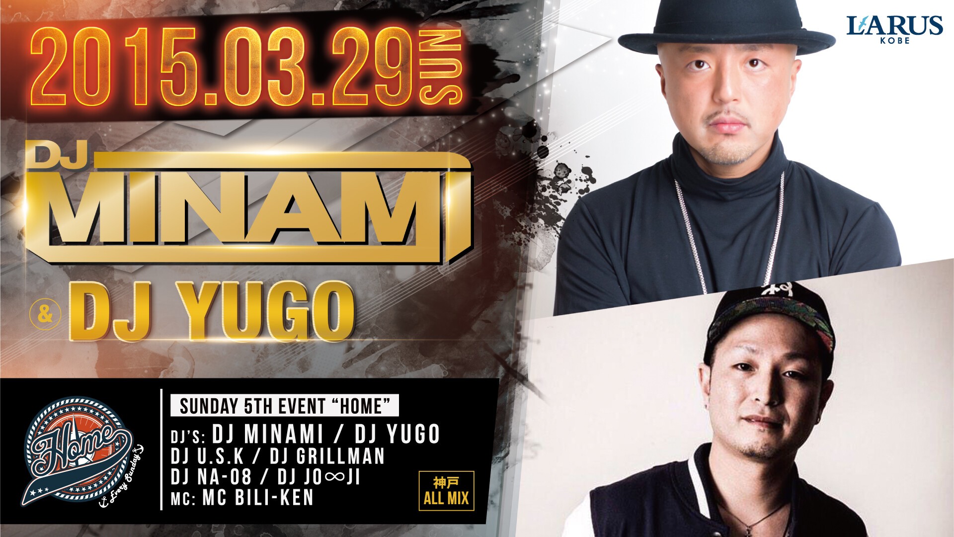 毎週日曜日、神戸ALLMIX"HOME"にDJ MINAMIとDJ YUGOが登場!!