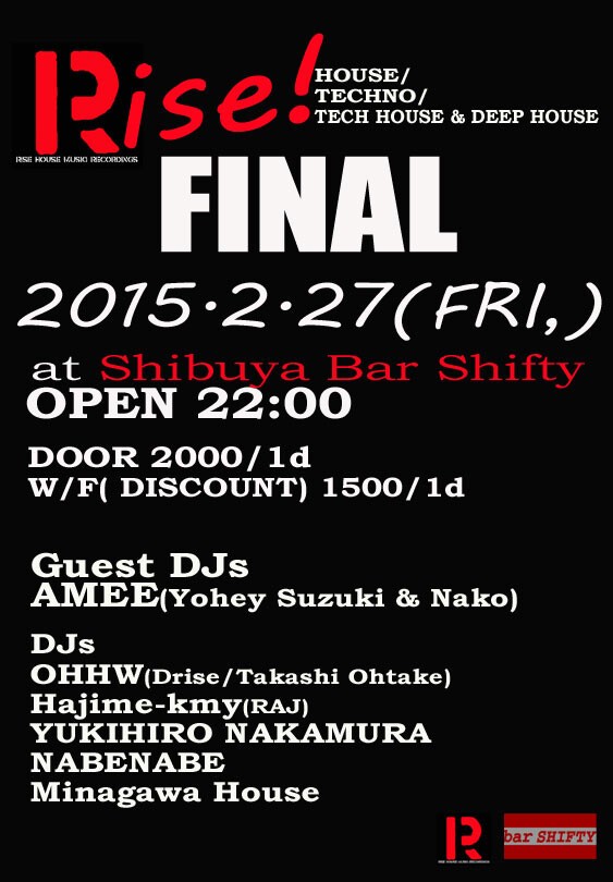 2/27 (FRI.) RISE! FINAL @ BAR SHIFTY