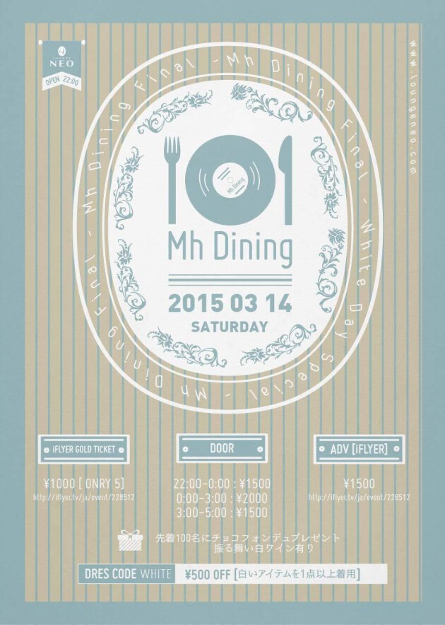 [past SNAP] 11/8(SAT) Mh Dining vol.2 @LOUNGE NEO