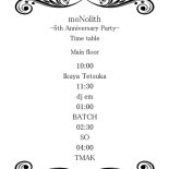 2nd Floorでは、"moNolith"が選び抜いたDJ達が一晩をメイクし、この夜のためだけのセットを披露してくれる事だろう。