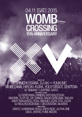渋谷の街、円山町に2000年にオープンして以来、幅広い世代の各国、各界で活躍する人々の交差点="WOMB CROSSING" になり、多種に渡った文化交流の場を提供してきた WOMB が、2015年4月に大きな節目となる15周年を迎えます。