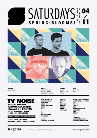 ageHaのニュー・パーティー、「SATURDAYS」にTV NOISEが登場!WATERエリアではトランス・パーティー、LIGAYA 7周年開催!