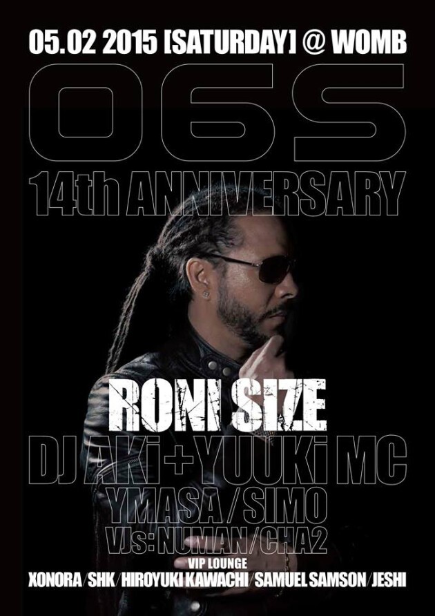 WOMB で最長を誇るマンスリーレジデントパーティー、そして今やアジア最大級のドラムンベース・パーティーまで成長を遂げた、06S の記念すべき14周年のアニバーサリーパーティーがゴールデンウィークに開催される。今回アニバーサリーに登場するゲストは、DRUM & BASS シーンに影響を与えたのは勿論の事、イギリスの音楽シーンのレジェンドとも言えるアーティスト RONI SIZE。ドラムンベース・グループ「レプラゼント」を率い、かつてマーキュリー賞も受賞した。昨年には、最新アルバム"TAKE KONTROL"をリリースし、話題を呼んだ。