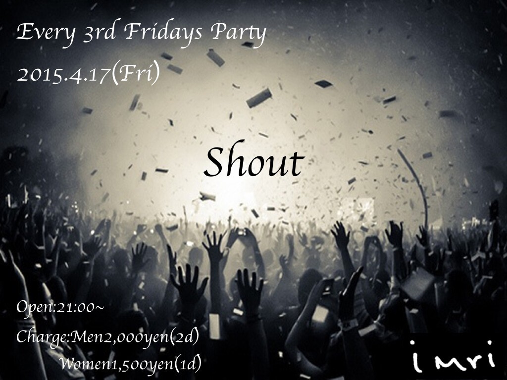 毎月第3金曜日にthe emporium下『imri』にて開催されるAll Mix Party!!!『Shout』
