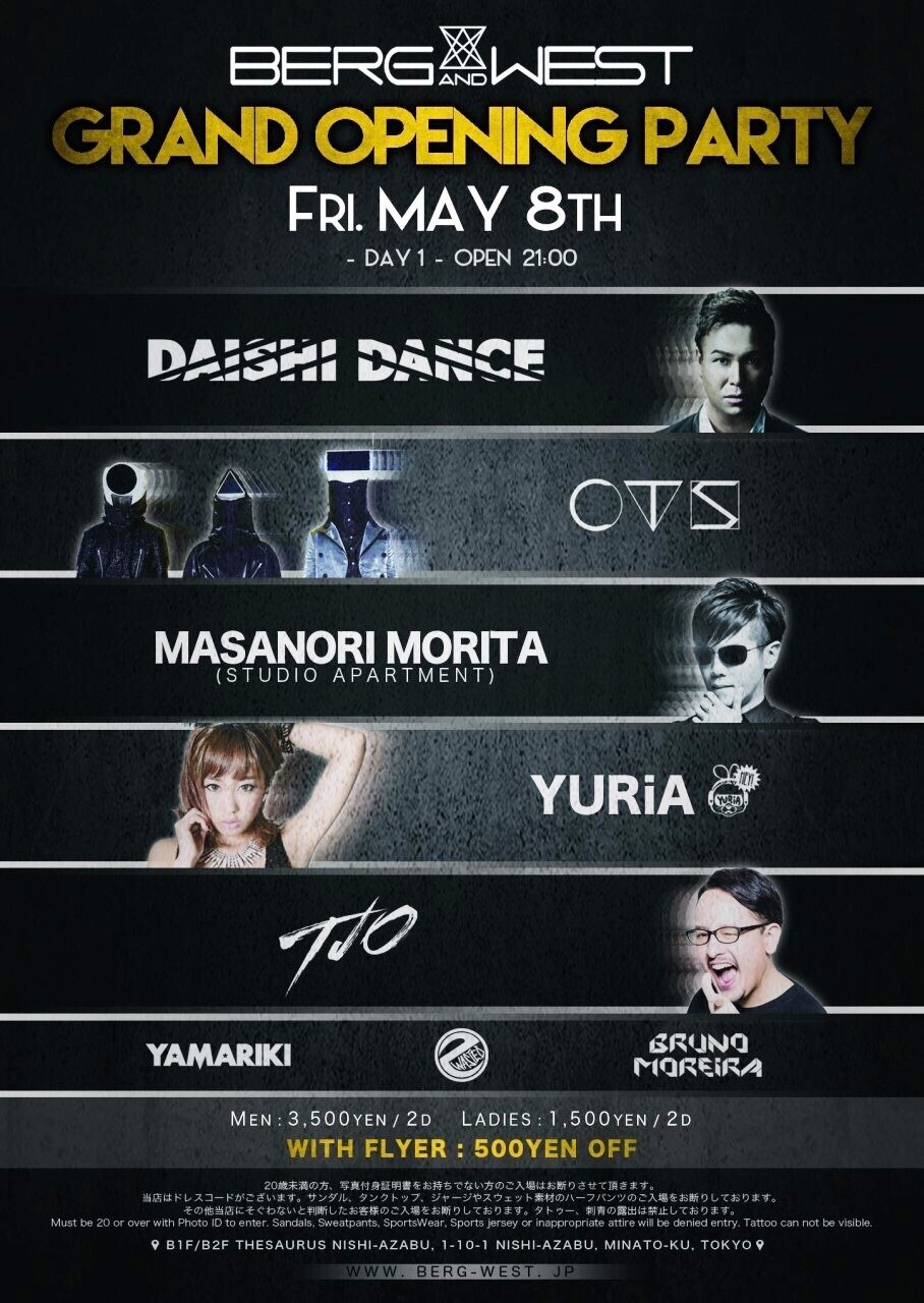 オープニングパーティーには DAISHI DANCE、DJ KAORI、CTSなど豪華ラインナップが決定!
