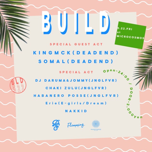 DEADENDとも親交のある日本のストリートを代表するJNGLFVRのメンバーからDJ DARUMA&JOMMY,CHAKI ZULU,HABANEROPOSSEに加え、エンターテイメントからアンダーグラウンドと幅広いフィールドで活躍する本格派DJ、E-girls/Dreamから