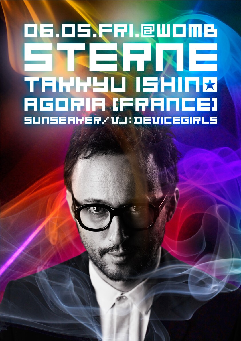 暑さが日ごとに増し、初夏を感じられる季節に開催される電気グルーヴ石野卓球氏 STERNE のゲストは、リヨン出身のベテランテクノプロデューサー AGORIA が STERNE 初登場。2000年以降のフランスのテクノ・シーンにおいて、最も先鋭的な活動を行うアーティストの1人とも言われるアゴリア。設立に参加した人気レーベル INFINE の脱退後も、バイタリティあふれる DJ / プロデューサー活動は勿論の事、地元リヨンで開催されている Nuits Sonores というエレクトロニック・インディーミュージックフェスティバルの立ち上げにも貢献している。