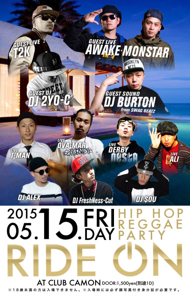 【RIDE ON】5/15(金)☆3rd FRIDAY HIP HOP®GAE PARTY『RIDE ON』☆☆CLUB CAMONのLINE公式アカウント登録で割引特典あり☆☆