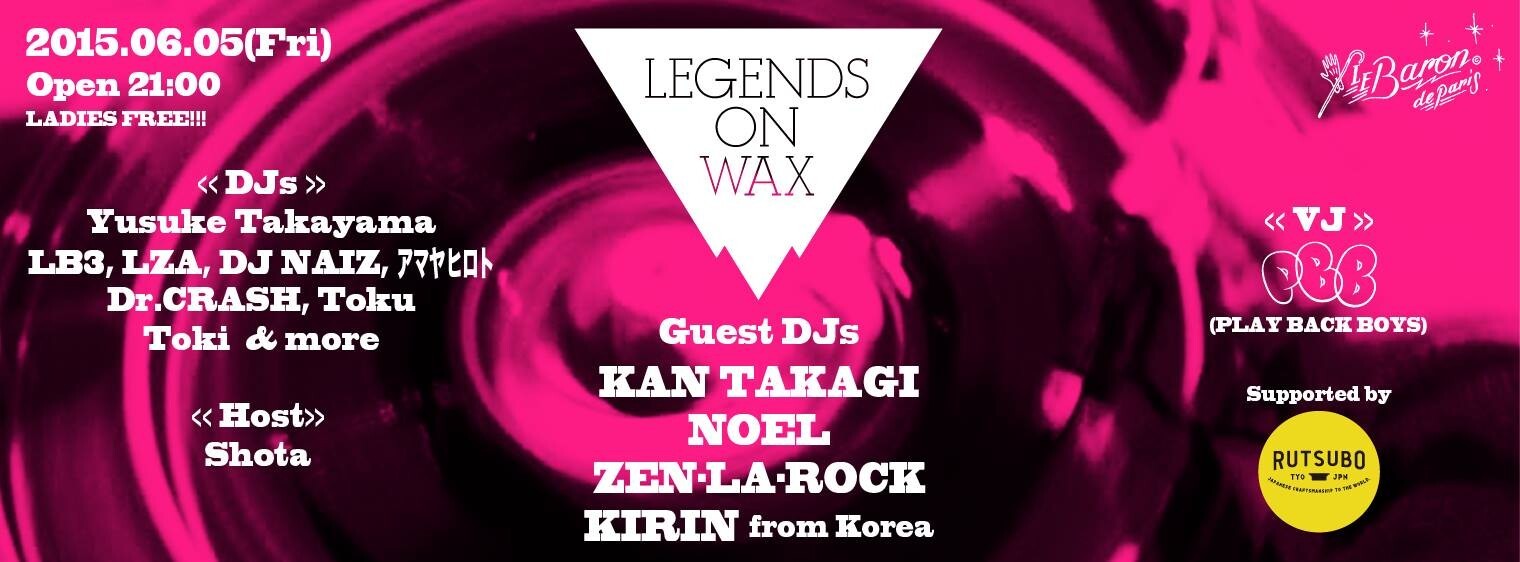 2015年1月に突如として開催された[ LEGENDS ON WAX ]過去開催されたPARTYでは前例のない程に大盛況で幕を閉じた熱いPARTYが更にパワーアップして登場!様々なジャンルのGUESTを招集し、楽しまずにはいられない夜をお届けします。