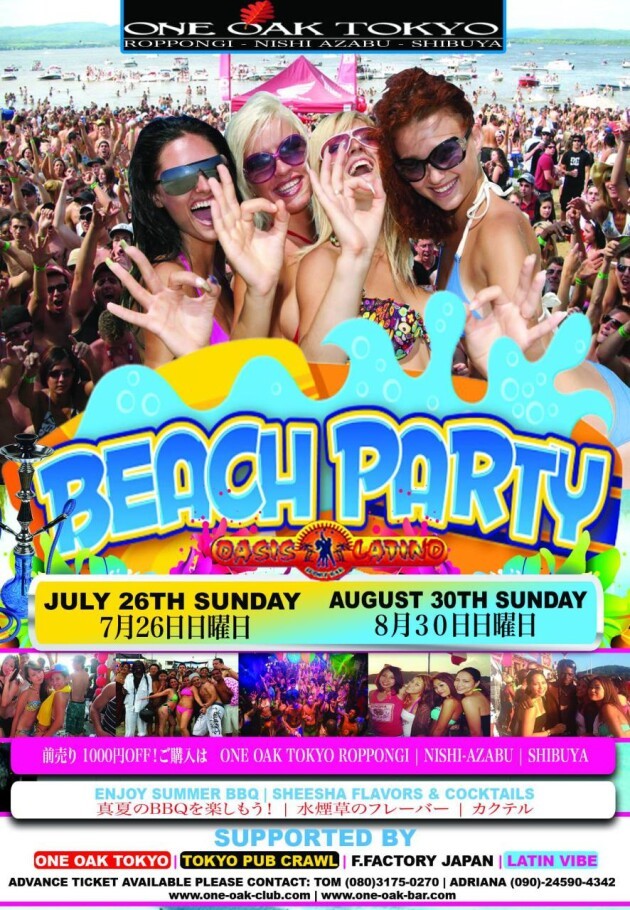 ONE OAK TOKYO PRESENT THE BIGGEST SUMMER BEACH PARTY SUPPORTED BY ONE OAK TOKYO | TOKYO PUB CRAWL | F.FACTORY JAPAN | LATIN VIBE | OASIS LATINO.