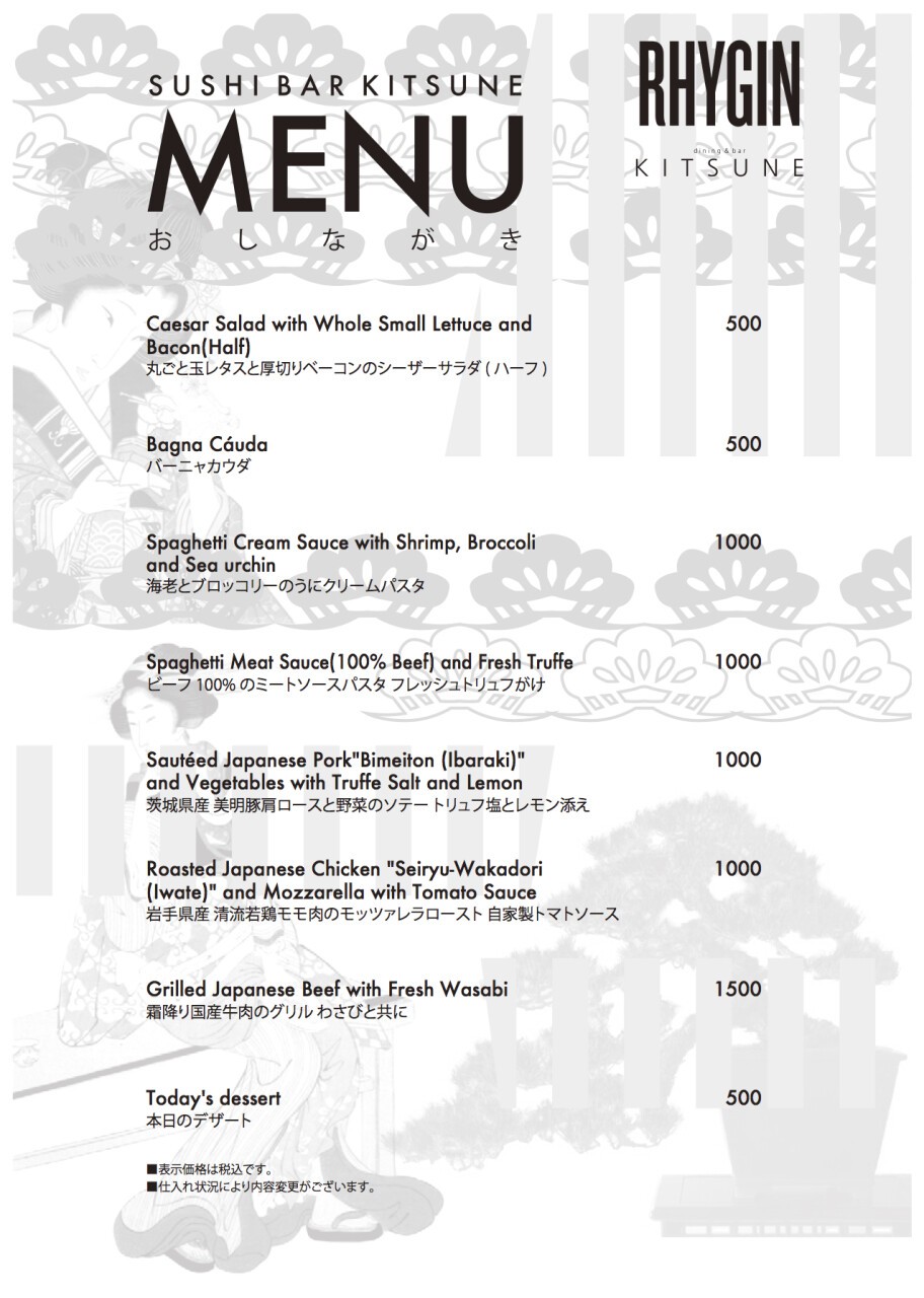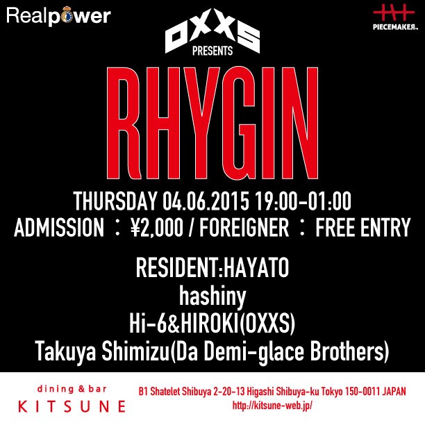 「RHYGIN」が2015年3月5日に恵比寿•渋谷のちょうど真ん中、都会の喧騒を感じさせない大人の秘密基地「dining&bar KITSUNE」に帰って来た。
