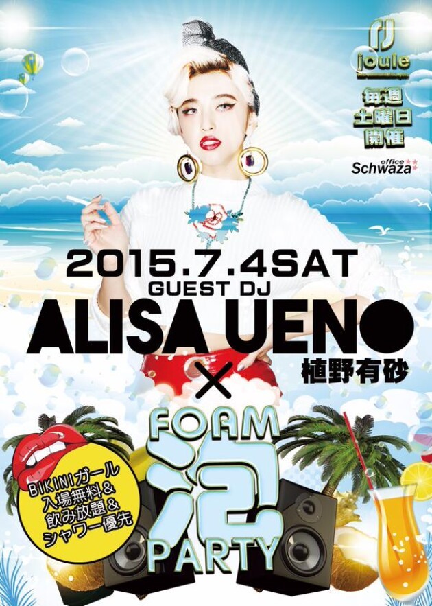【ALISA UENO × 泡PARTY】 2015.7.4.SAT OPEN 22:00 GUEST DJ ALISA UENO(植野 有紗) ★BIKINIガール★ 入場無料 飲み放題 シャワー優先
