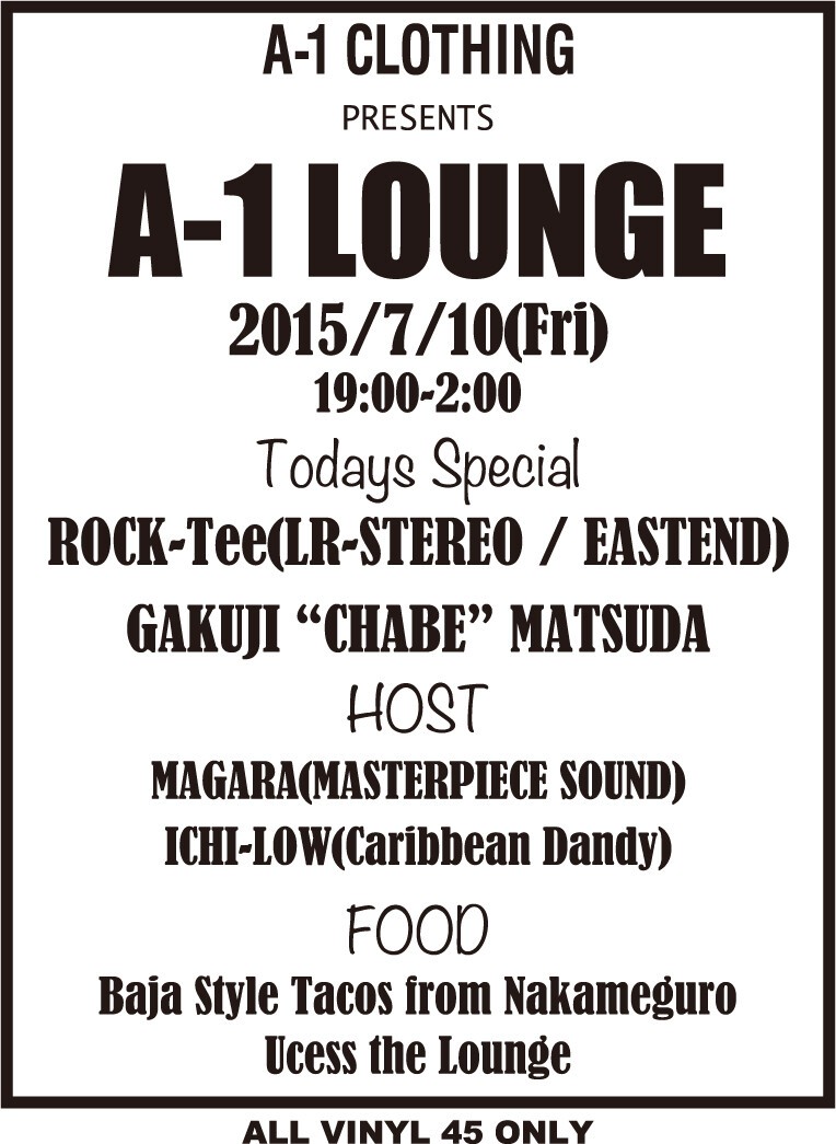●神宮前に構えるセレクトショップA-1 CLOTHINGがお届けするラウンジパーティー。