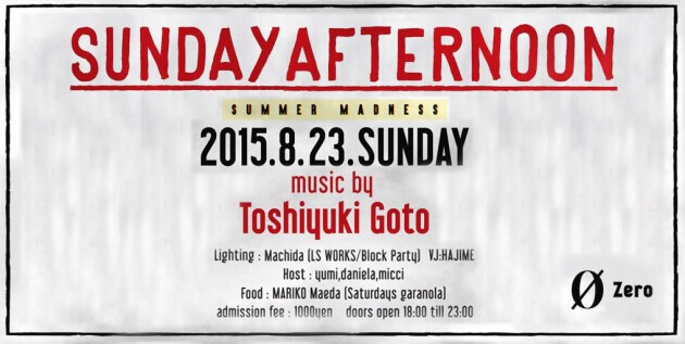 DJ Toshiyuki GotoのOPEN to LAST SETを堪能できる、本人主催のSUNDAY AFTERNOON。