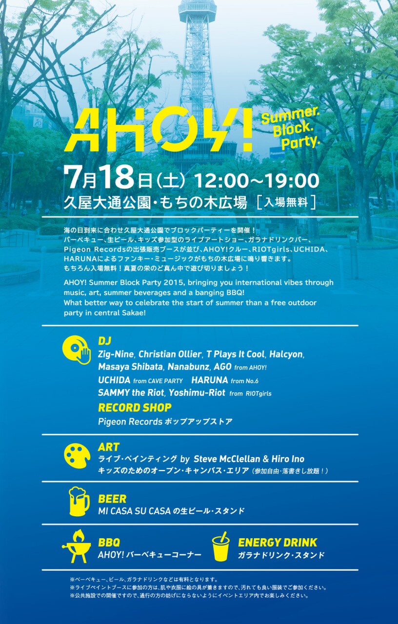海の日到来に合わせ、AHOY! が久屋大通公園でブロックパーティーぶっかまします。