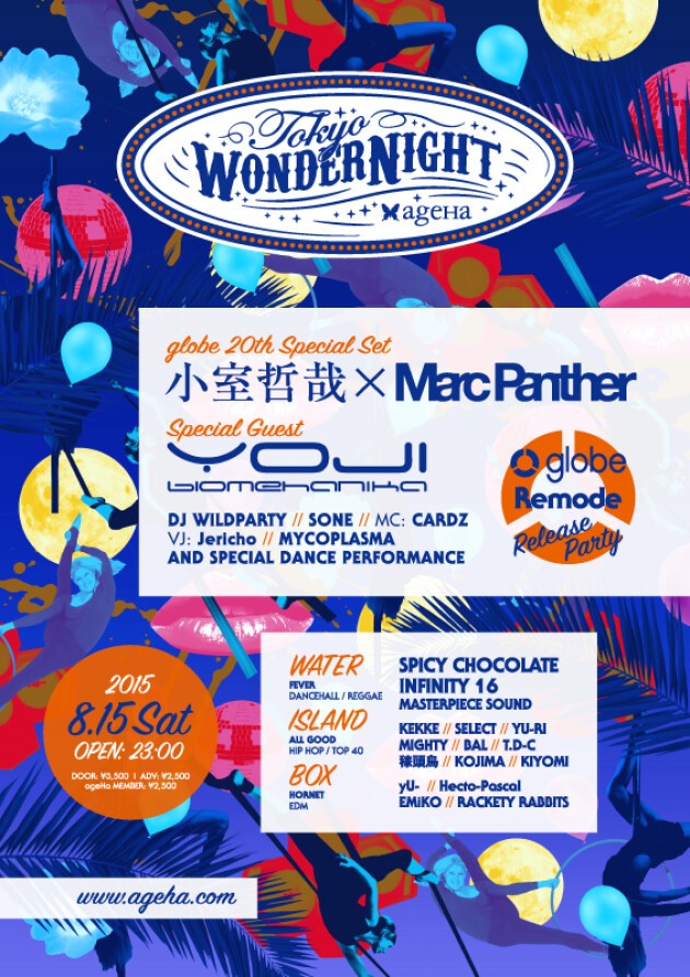 お盆真っ只中のこの日のヘッドライナーには、日本の音楽シーンの伝説的グループ”globe”の結成20周年イヤーを記念し小室哲哉とマークパンサーがglobeスペシャルセットを披露!そしてそれを記念して発表されたセルフリプロダクトアルバム「Remode 1」のリリースパーティーを開催!