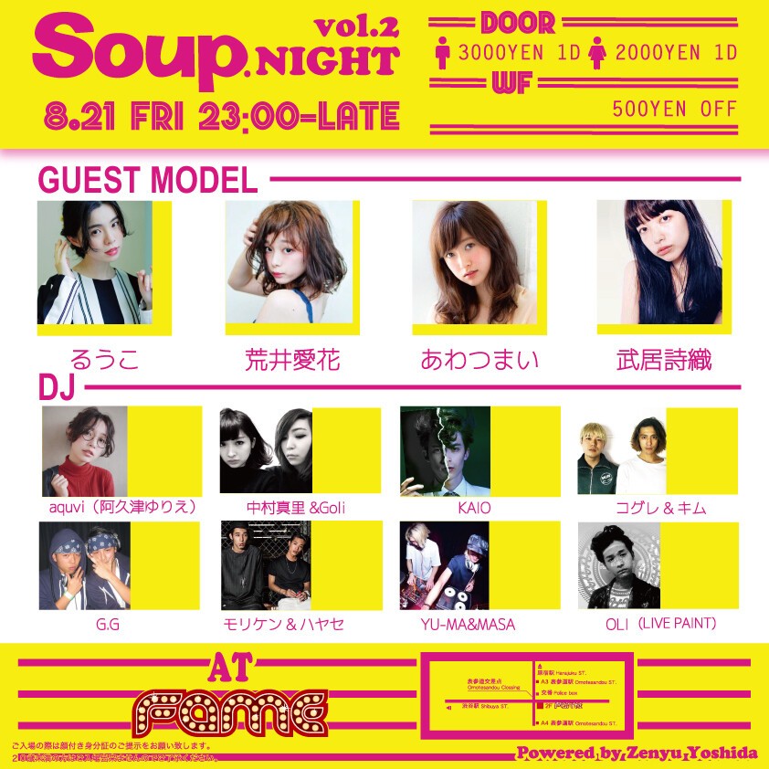 ストリートな感覚を持ち続ける“大人になった女の子”のためのファッション誌「Soup.」と、表参道交差点に誕生したばかりのナイトクラブ「FAME」とのコラボレーションによって始まった同誌初の公式クラブイベント「Soup. NIGHT」!