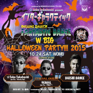 ☆Taku Takahashiが多くのクラウドを音楽の流星群のなかへと導いてきた銀河系ビッグ・イベント『インターギャラクティック』。そして、DAISHI DANCEが多幸感あふれる空間を生み出してきた『ファンタスティック・ダンス』。名実共にWOMBを代表するこの2つがコラボレーションを果たし、スペシャルなハロウィーン・パーティを開催する。しかも今年は、m-flo のメンバーであり、ここ最近はDJ MAKIDAI(EXILE)とDJ DARUMAとのユニットPKCZ®でも活躍するVERBALがゲストとして登場!そんな3人に加え、当日はCYBERJAPAN DANCERSがクール&セクシーなパフォーマンスを披露する。10月24日(土)、この日限りで出現する魅惑のワンダーランドへ、いざ!