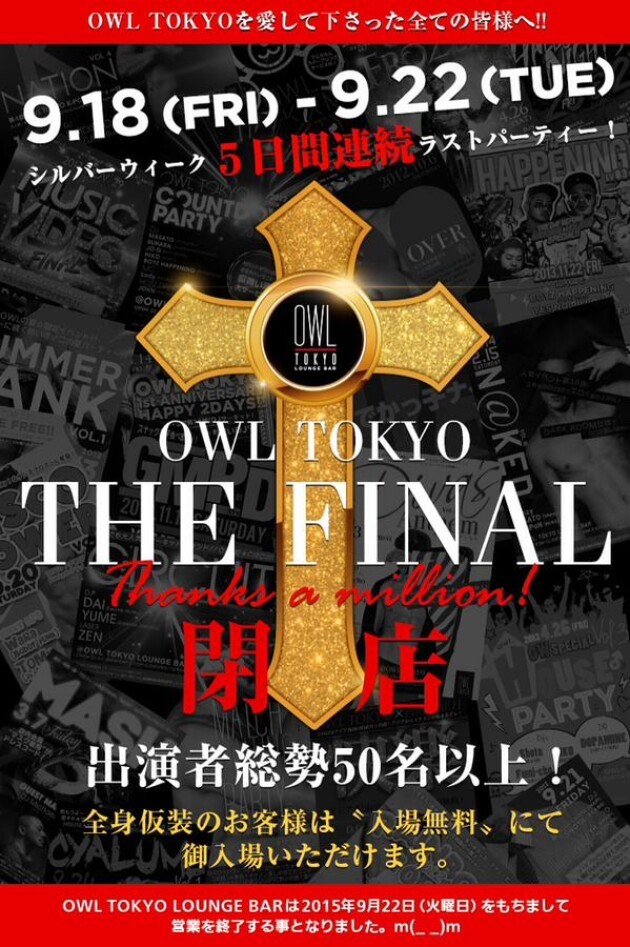 【お知らせ】OWL TOKYO LOUNGE BARは、