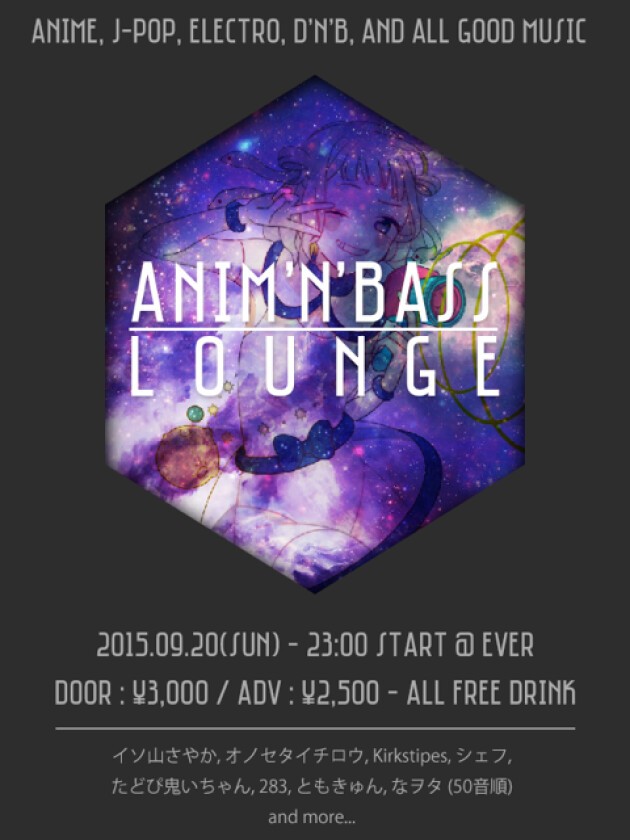 9/20(日曜・祝前日)23時オープン朝まで飲み放題!アニソン+オールジャンルイベント!