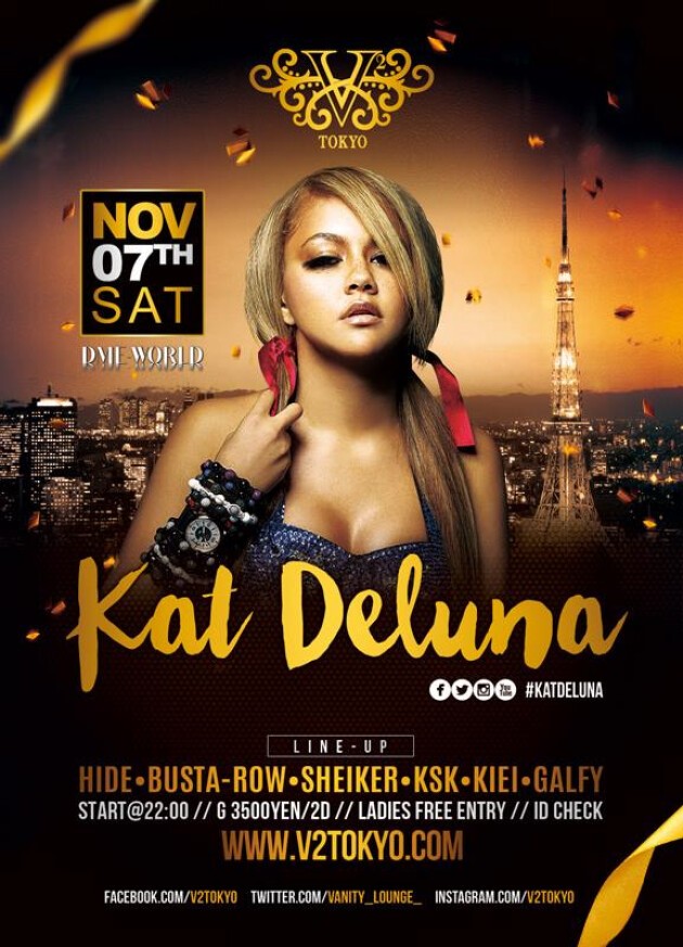★★11/7(土)あの''Whine Up''でお馴染みの全世界で人気ラテン*ポップ歌姫『Kat Deluna』がV² TOKYOに初登場!★★