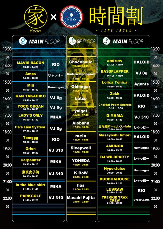 LOUNGE NEOとも繋がりの深いアーティストから、 今後、新たな繋がりをもって盛り上げて行きたいアーティストを幅広く招集。 タイトルに通ずる『家』、ホームグラウンド感を目指すLOUNGE NEOで、 アーティストだけではなく、お客様にも渋谷の『家』を感じて欲しい。 この1年、はたまた13年間の歴史の中で、 音楽と共に過ごした楽しい思い出、恥ずかしい思い出、 苦しい思い出、甘酸っぱい思い出、お酒で失敗した思い出、 LOUNGE NEOという名の『家』で新たに- Yeah -な思い出を刻みましょう!