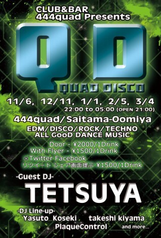 CLUB&BAR 444quadがお送りする毎月第1金曜日恒例の EDM パーティーその名も 「QD」