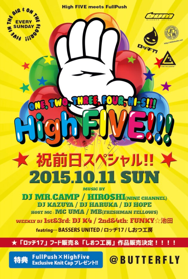 毎週日曜日に京都のベテランDJ Mr.CAMPとレゲエサウンドNINE CHANNELのHIROSHIによるNewパーティー"High FIVE !!!"がスタート!!