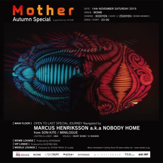 This year, Mother supported by WOMB has featured colorful, genre-jumping acts like ALBERTO RUIZ x THE DELT, GUY J x EMOK, and PROTOCULTURE x GAI BARONE. The theme of this year’s conclusion is “AUTUMN SPECIAL,” and we’re preparing conceptual concepts that will allow you to experience the world from the viewpoint of a Mother. This performance will be the performance that we’ve been building up to since we started Mother. The navigator on this day will be MARCUS HENRIKSSON a.k.a NOBODY HOME, who is famous for SON KITE / MINILOGUE. This year will feature an OPEN TO LAST 6-hr SPECIAL LONG SET! As always, the organizers haven’t missed a single floor in their preparations. An event like this where one can enjoy music all night long could only be pulled off by the 4-floor WOMB. We’re making the preparations, but the true event is the memories that we will all create together, and we sure are looking forward to it!