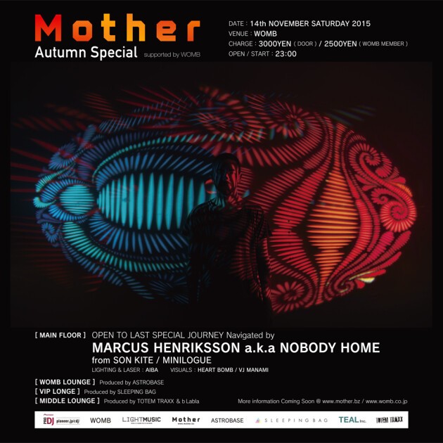 Mother がかねてから実現したかったスペシャル企画となる本公演。この日をナビゲートするのは、SON KITE / MINILOGUE として名高い MARCUS HENRIKSSON a.k.a NOBODY HOME。今回はなんと、OPEN TO LAST の SPECIAL LONG SET での登場となります!