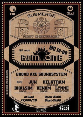 今回のSUBMERGEは1st Anniversaryとしてスペシャルアクトに、東京から世界へ最新のレゲエサウンドを発信しているBim One ProductionとMC Ja-geが登場!